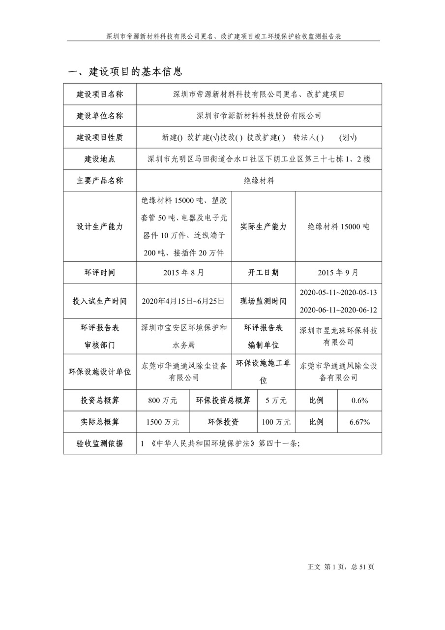 深圳市帝源新材料科技股份有限公司更名、改擴(kuò)建項目竣工環(huán)境保護(hù)驗收報告-1